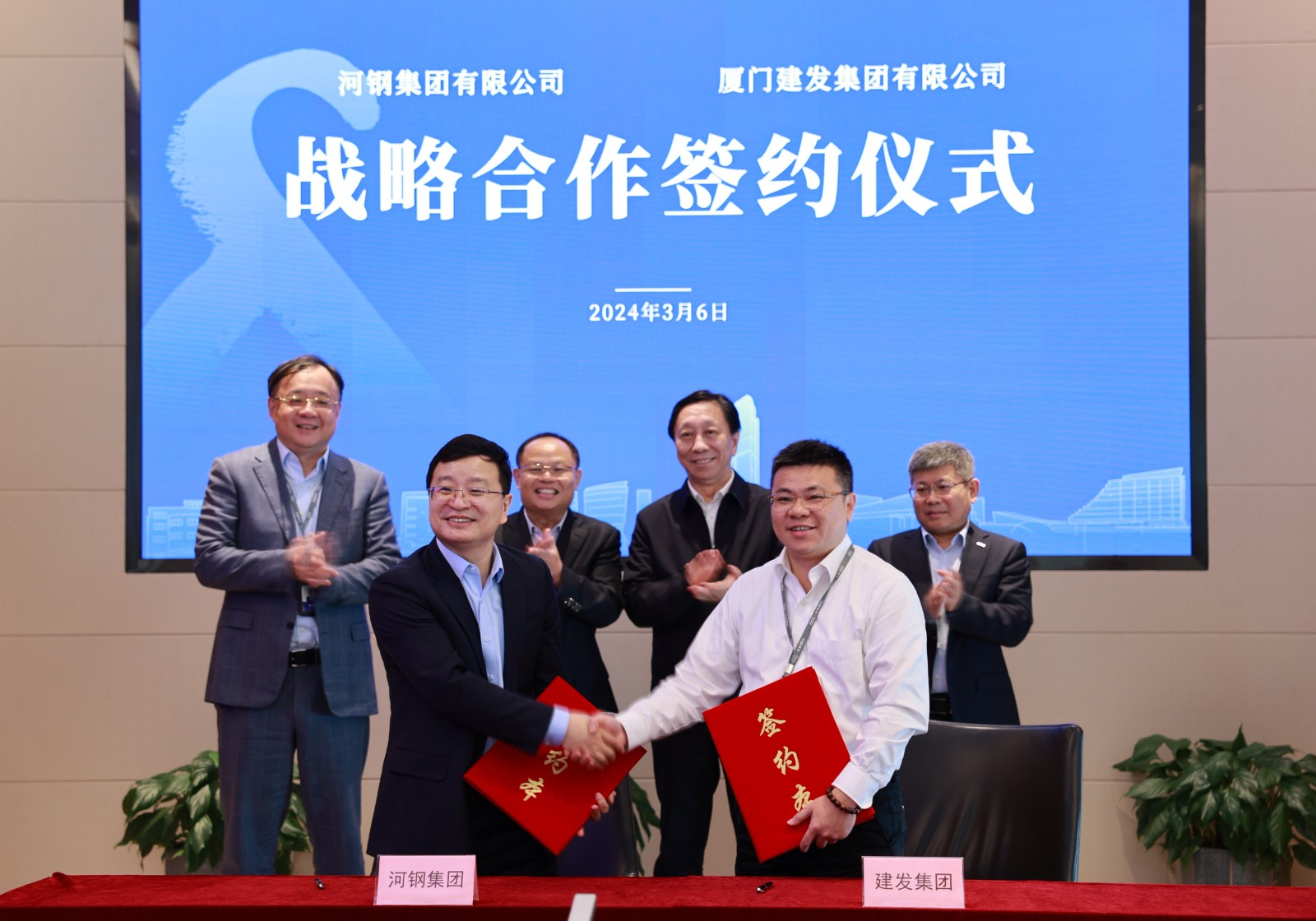 On March 6th, C&D Group and HBIS Group signed a full-industry chain strategic cooperation framework agreement in Xiamen. The strategic cooperation agreement was signed in the presence of key executives from both HBIS Group and C&D Group. From HBIS Group, Yu Yong, the Secretary of the Party Committee and Chairman, and Hu Zhigang, the Chief Accountant and CFO, were present. Representing C&D Group were Huang Wenzhou, the Secretary of the Party Committee and Chairman, and Zheng Yongda, the Deputy Secretary of the Party Committee and General Manager. The agreement was formally signed by Li Yiren, HBIS Group's Deputy General Manager and Chief Strategy Officer, and Cheng Dongfang, the Deputy General Manager of C&D Inc. and General Manager of the Steel & Iron Group, acting as representatives for their respective companies.